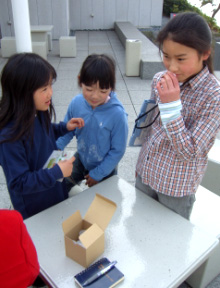 午後は学校に戻り、グループでそれぞれがひろった言葉を発表し、意見交換をした。その中で仲間の発言を聞いて「そんな作品あったっけ?」「気になるなぁ」などのつぶやきが出てきた。みているようでみていない自分に気づいた瞬間だ。午後はその気になったものを確かめに、再度鎌倉館へ出かけた。一度美術館を離れて自分の気持ちをリセットするとまた作品の見方が変わるようで、それぞれの子が新しい発見をしていた。結局初めての鎌倉館は1日日程になった。「話してはいけない。走ってはいけない。遊んではいけない。」と元気印の子どもたちにとっては「いけない」ことばかりだったが、不思議と1日美術館の中で落ち着いて生活できた。普段は学校では学習や行事、家庭では塾などの習い事に追われ、大人顔負けの忙しい毎日を送っている子どもたちだからこそ、ぼ~っと作品をみながら想像を広げる時間はとても有意義だったのだと思う。