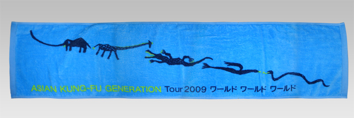 人気ロックバンド ASIAN KUNG-FU GENERATION のツアー、Tour 2009「ワールド ワールド ワールド」のTシャツイラストを制作しました。 マフラータオルのイラストも描いています。