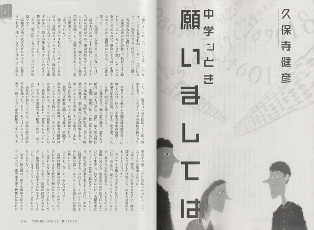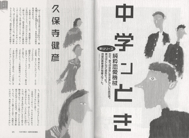 文芸誌「野性時代」(角川書店)の新連載小説「中学ンとき」(久保寺健彦,著)の扉イラストを担当することになりました。
