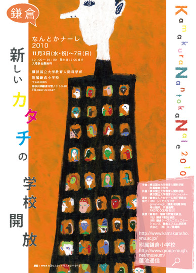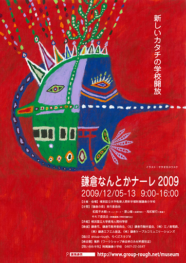 横浜国立大学教育人間科学部付属鎌倉小学校にて12月に行われる、 新しいカタチの学校開放「鎌倉なんとかナーレ2009」のポスターイラストを描きました。 鮮烈な「解放」が放つインパクトのあるデザインが印象的です!